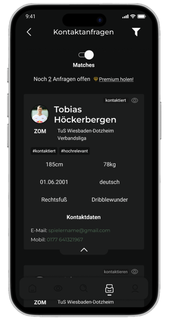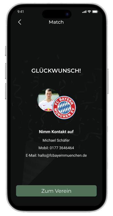 Schalte persönliche Kontaktdaten frei und trete sofort mit passenden Vereinen in Kontakt