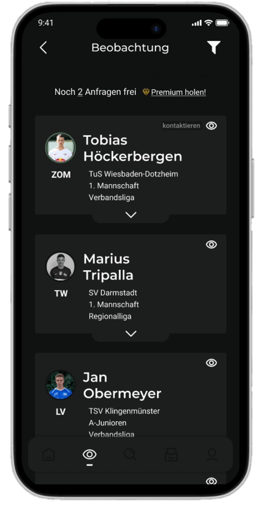 Finde genau die Spieler, die zu deinem Kader passen – mit automatisierten Profilen und intelligenten Filtern, die dir echte Übersicht verschaffen.