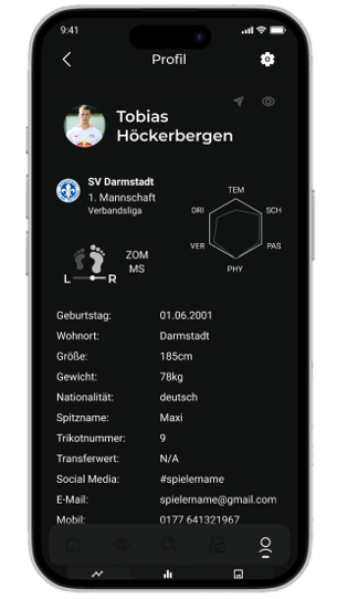 Wir geben dir die Tools, um gesehen zu werden – ganz ohne Umwege. Erstelle dein Profil, zeig wer du bist, bleib in Kontakt mit Vereinen und finde den Club, der wirklich zu dir passt.