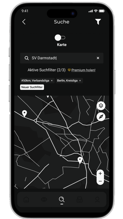 Nutze intelligente Filter, um gezielt nach Vereinen in deiner Region und deinem Niveau zu suchen